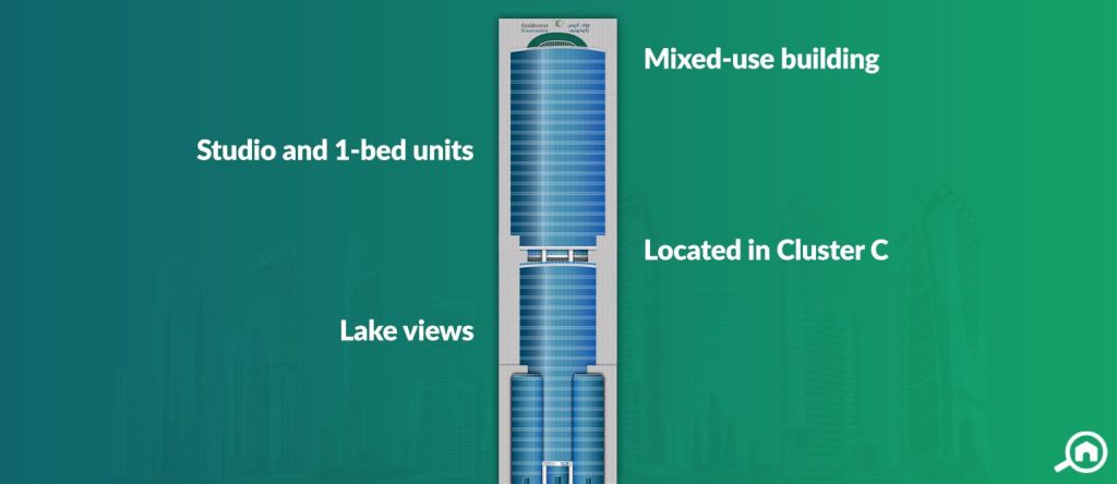 Goldcrest Executive in JLT is a mixed-use tower developed by ETA Star – Giga. The project was launched in 2005 and completed in 2009. Standing 165 metres tall, it has 40 floors where floors 1 to 20 have offices and floors 21 to 38 are dedicated to studio flats and 1-bedroom